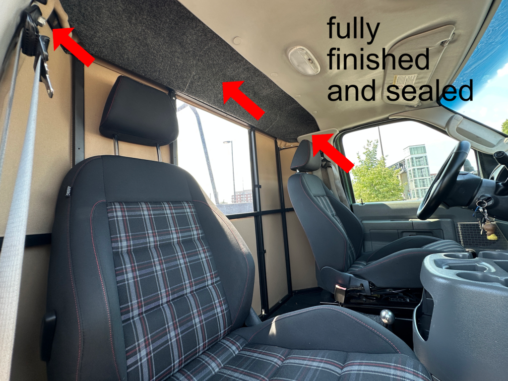 ⦁ Custom extended cab-back Mercedes convertible canvas, bulkhead door zip-out with window